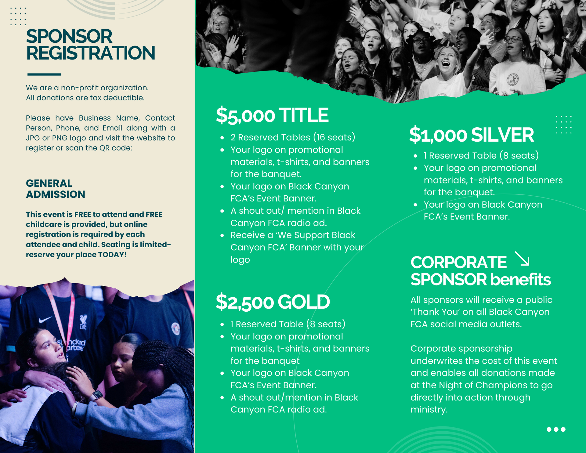- Your logo on Black Canyon FCA's Event Banner.